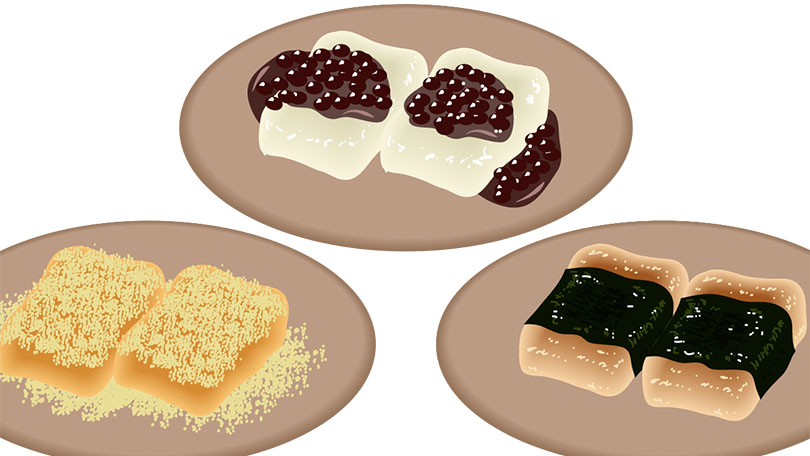 つきたてのお餅は、①からみ餅 ②きなこ餅 ③あんこ餅 の、計3種類用意し、
